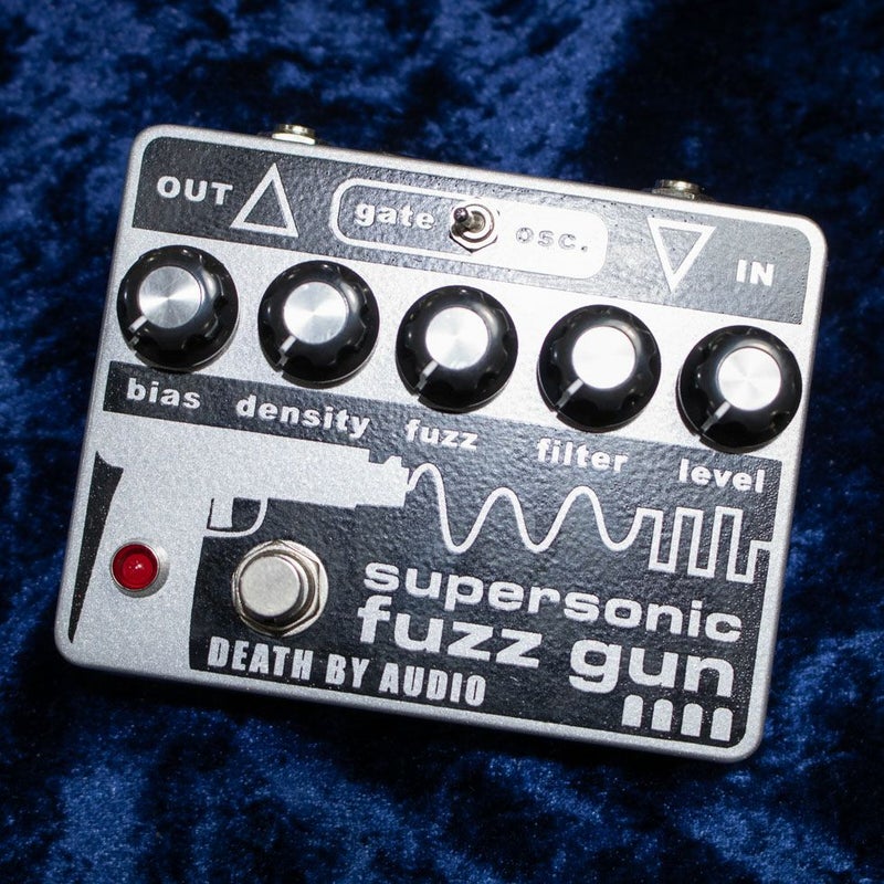 Death By Audio(DBA)の”Supersonic Fuzz Gun”は、最も「ビザール」なファズペダルであり、DBAのロングセラー製品です。特殊なゲートファズ、奇妙な発振とファズ、発振することに重点を置くOSCモードなど、変態ゲートファズの様々なバリエーションをプレイすることができます。