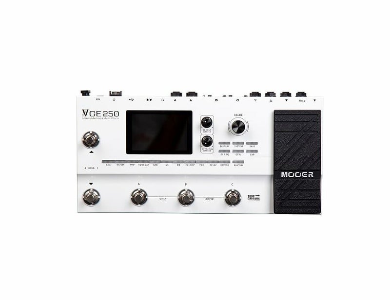 Mooer GE250は、55種類のアンプモデル、152種類のエフェクト、32種類のキャビネットシミュレーションを収録した、ミドルサイズのマルチエフェクターです。