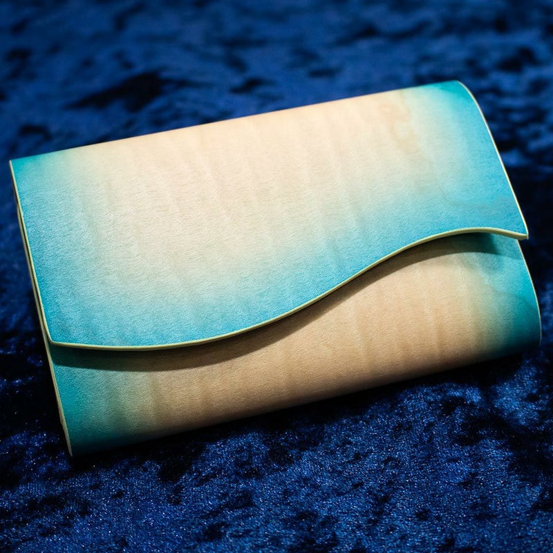 最高級のヌメ革に天然木を貼り付け、ひとつひとつ異なる表情を見せる唯一無二の一品。