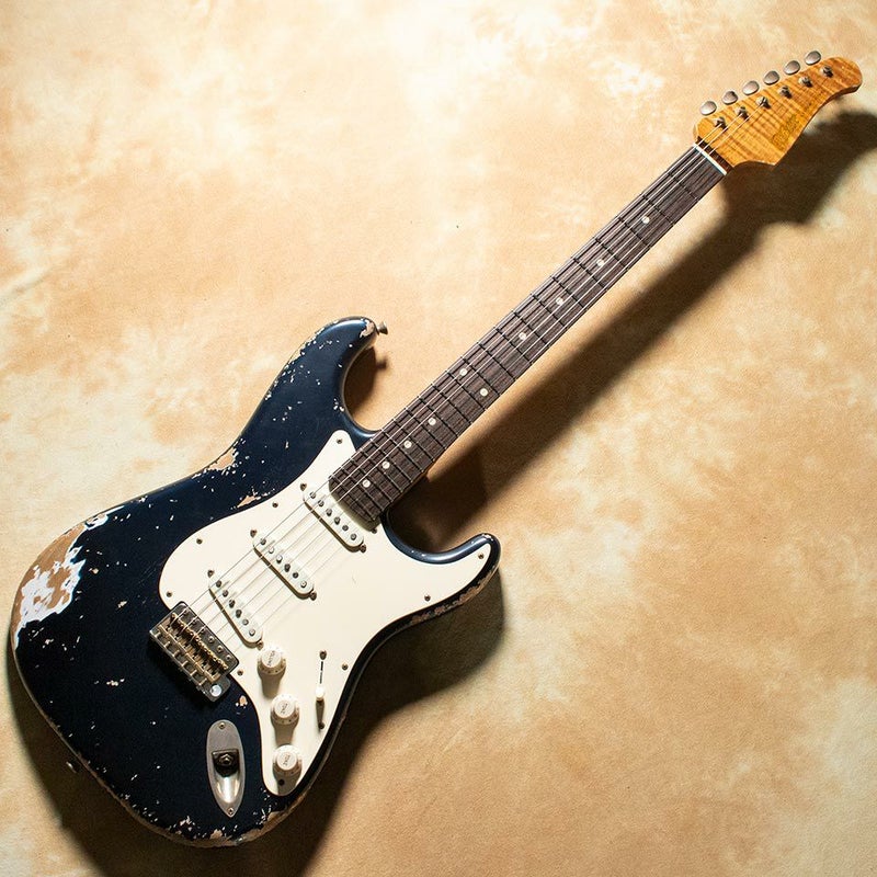 同ブランドはSSH配列も主流ですが、今回は王道のSSS配列に!カラーは当店おなじみ(?)のメルセデスブルーでクールに仕上げております。木材はアルダーボディ×ローステッドメイプルネック×ローズウッド指板でです。