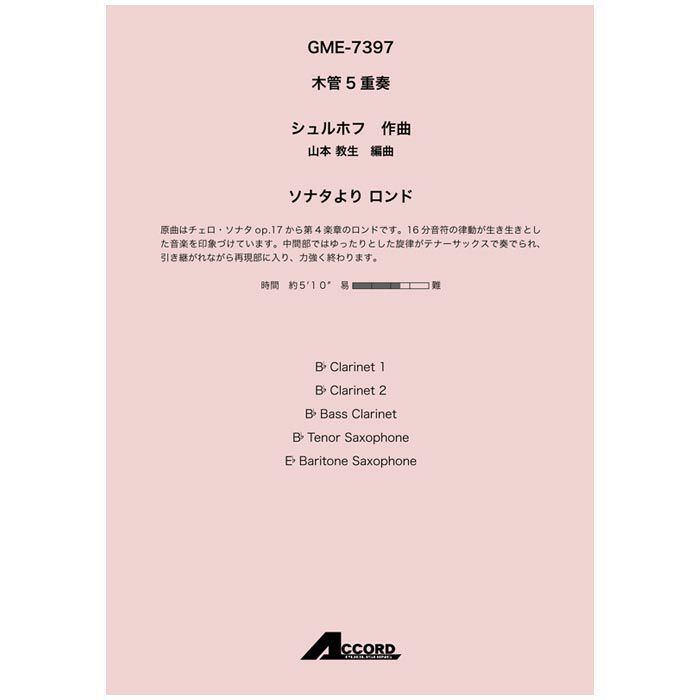 [アンサンブル楽譜 木管5重奏] ソナタより ロンド ※メール便対応:代引不可